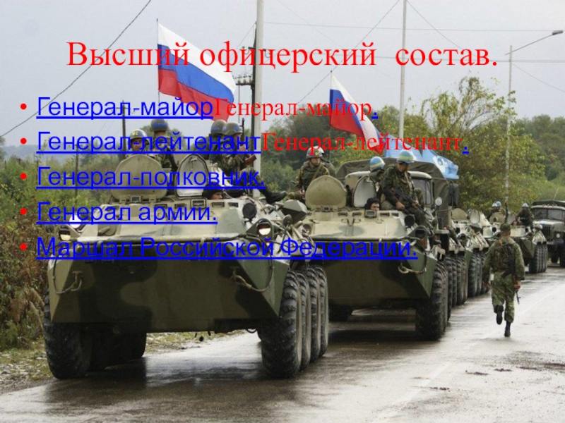 Высший офицерский  состав.Генерал-майорГенерал-майор.Генерал-лейтенантГенерал-лейтенант.Генерал-полковник.Генерал армии.Маршал Российской Федерации.
