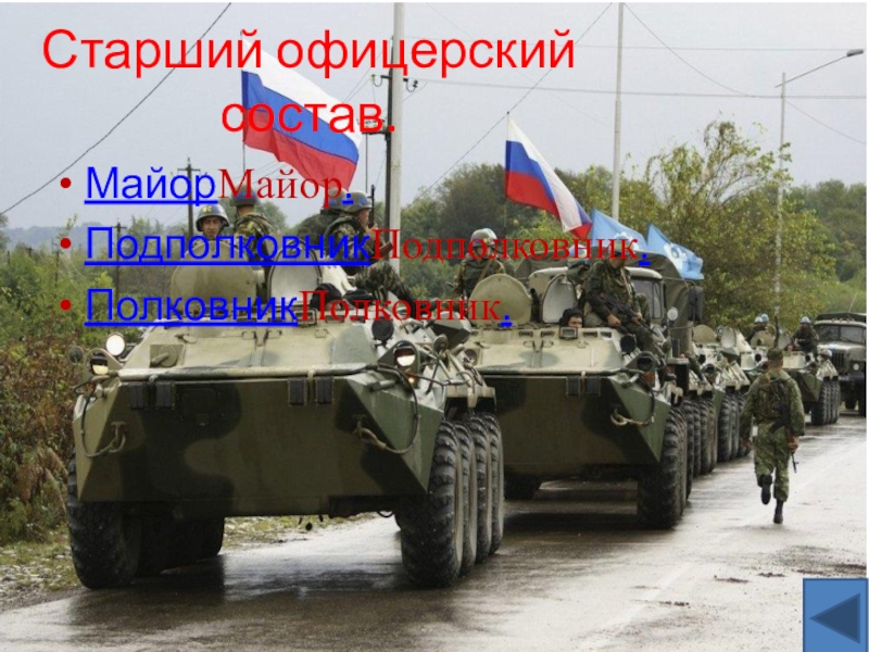 Старший офицерский  состав.МайорМайор.ПодполковникПодполковник.ПолковникПолковник.