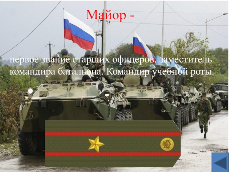 первое звание старших офицеров. заместитель командира батальона. Командир учебной роты.Майор -