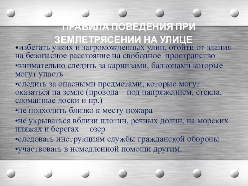 ПРАВИЛА ПОВЕДЕНИЯ ПРИ ЗЕМЛЕТРЯСЕНИИ НА УЛИЦЕ
