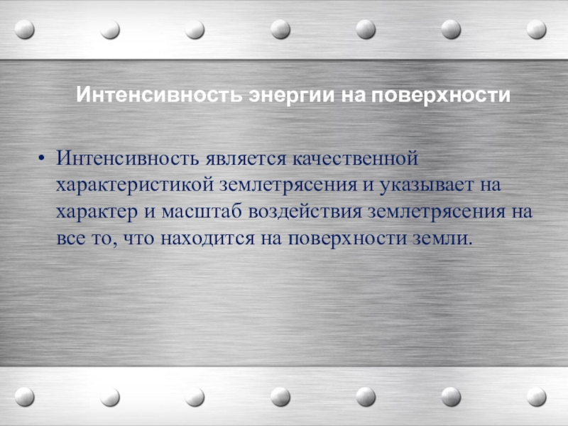 Интенсивность является качественной характеристикой землетрясения и указывает