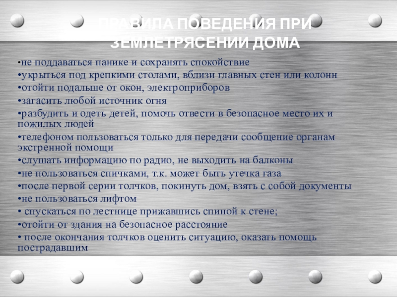 Слайд 11ПРАВИЛА ПОВЕДЕНИЯ ПРИ ЗЕМЛЕТРЯСЕНИИ ДОМА