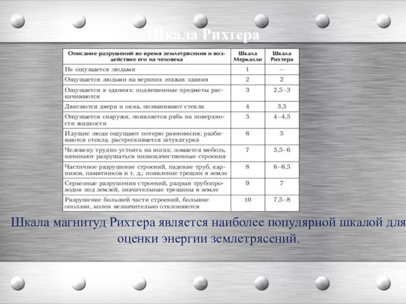 Шкала магнитуд Рихтера является наиболее популярной шкалой для оценки энергии