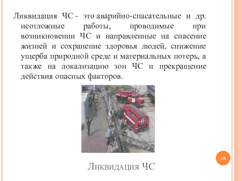 Ликвидация ЧС - это аварийно-спасательные и др. неотложные работы, проводимые при возникновении