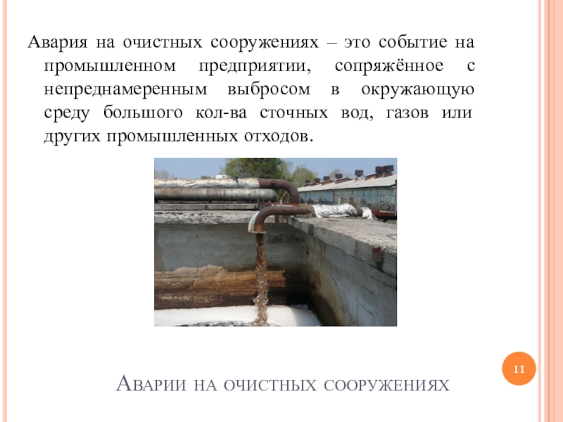 промышленном предприятии, сопряжённое с непреднамеренным выбросом в окружающую среду большого кол-ва сточных вод, газов или других промышленных отходов.