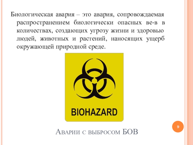 Биологическая авария – это авария, сопровождаемая распространением биологически опасных