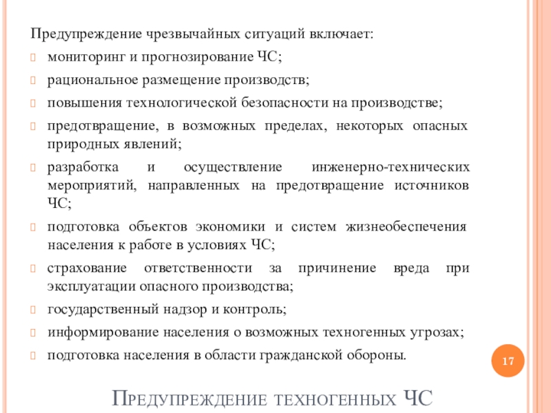разработка и осуществление инженерно-технических мероприятий, направленных на предотвращение источников ЧС;