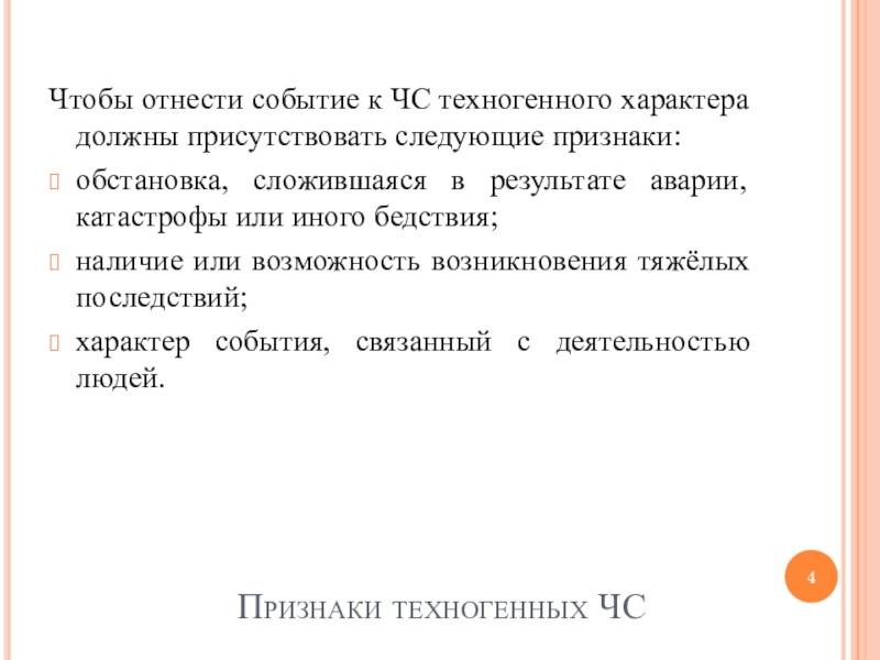 Чтобы отнести событие к ЧС техногенного характера должны присутствовать