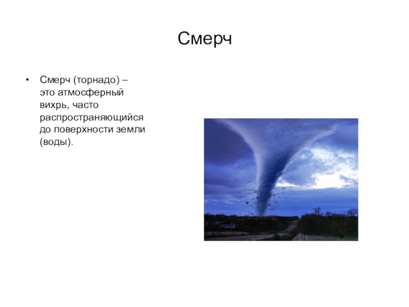 это атмосферный вихрь, часто распространяющийся до поверхности земли (воды).