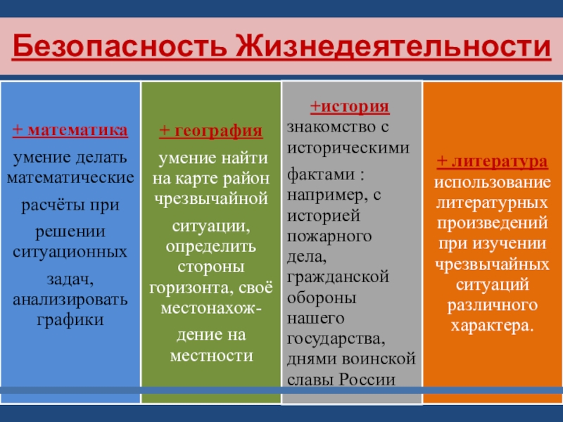 Слайд 6 Межпредметные связи, интегрирующие БЖ с другими предметами: