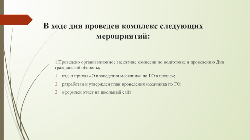 издан приказ «О проведении месячника по ГО в школе»;