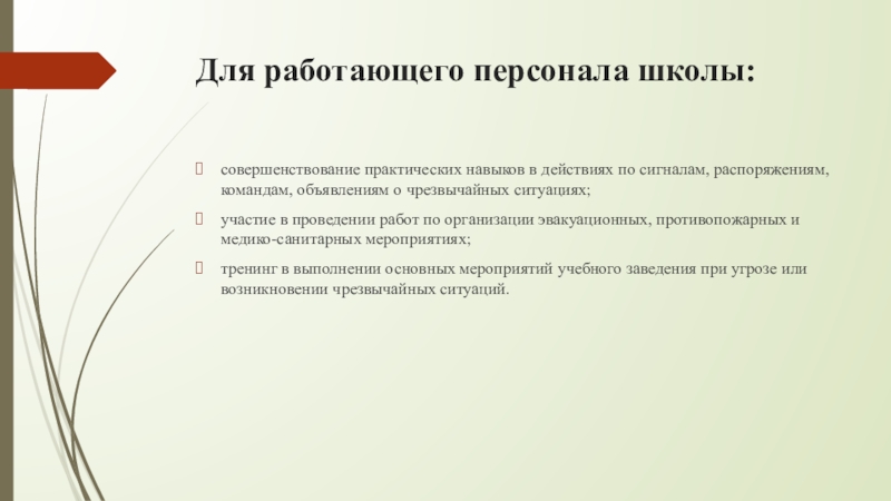 Слайд 4Для работающего персонала школы: