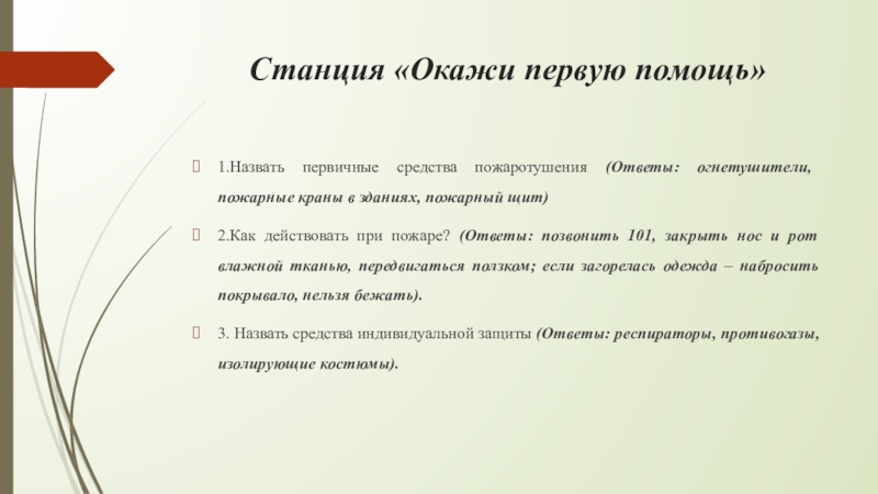 3. Назвать средства индивидуальной защиты (Ответы: респираторы, противогазы, изолирующие костюмы).