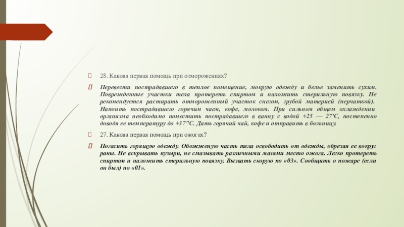 Слайд 2428. Какова первая помощь при отморожениях?