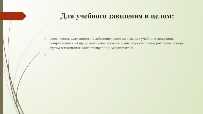 заведения, направленных на предотвращение и уменьшение людских и материальных потерь, путем выполнения соответствующих мероприятий.