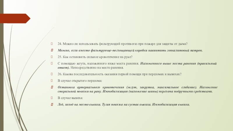 Слайд 2324. Можно ли использовать фильтрующий противогаз при пожаре для защиты от