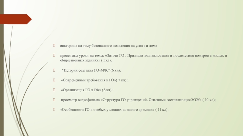 «Особенности ГО в особых условиях военного времени» ( 11 кл).