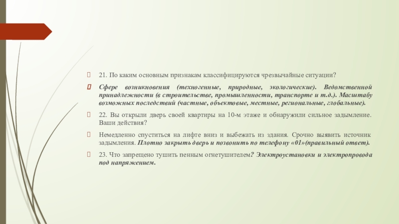 Слайд 2221. По каким основным признакам классифицируются чрезвычайные ситуации?