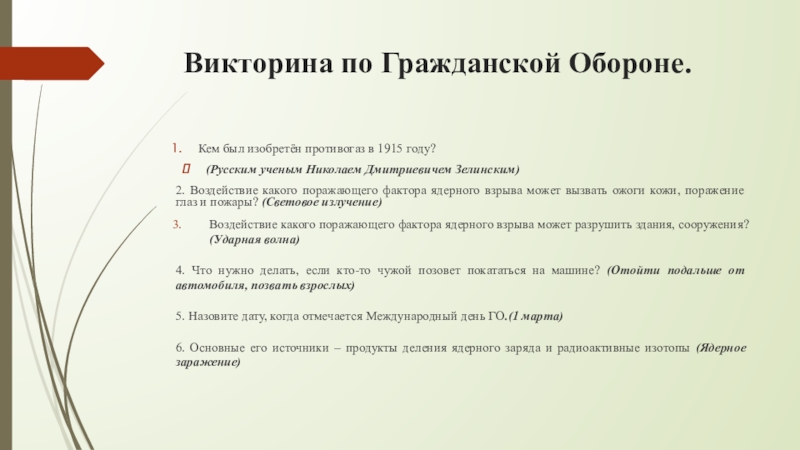 Слайд 17 Викторина по Гражданской Обороне.