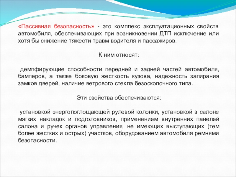 наличие на автомобиле надежной, хорошо видимой световой и звуковой сигнализации, а также надежность и долговечность узлов и деталей автомобиля, исключающие поломки ответственных деталей и отказ в работе узлов, приводящих к дорожно-транспортному происшествию.