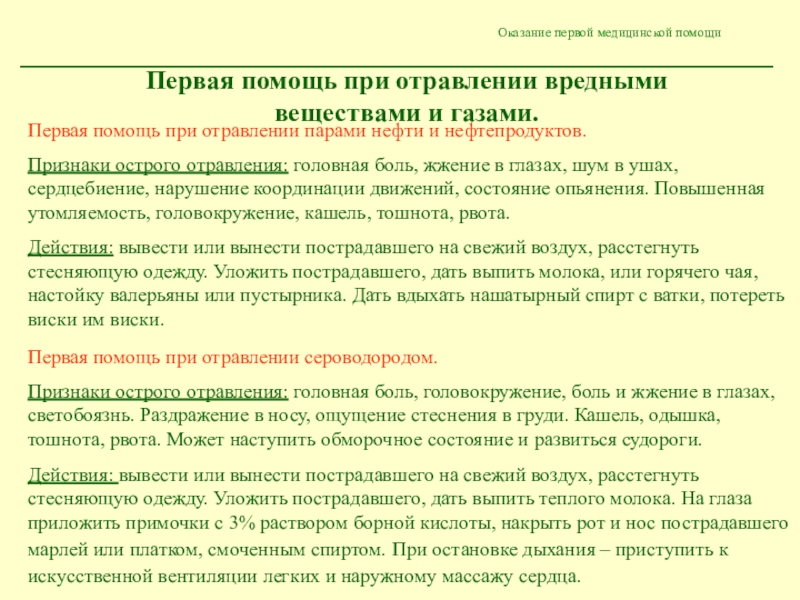 Первая помощь при отравлении парами нефти и нефтепродуктов.