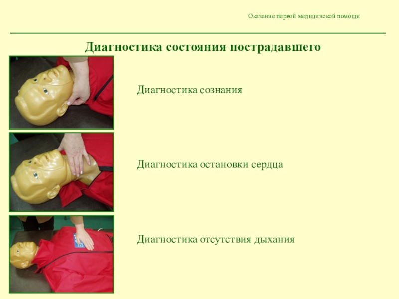 При остановке дыхания и отсутствии пульса – приступить к искусственной вентиляции легких и наружному массажу сердца.
