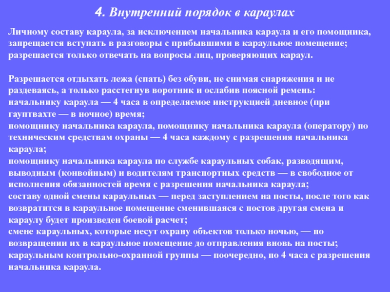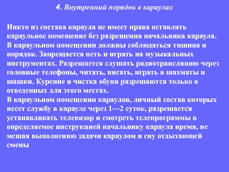 Слайд 27Личному составу караула, за исключением начальника кара­ула и его помощника, запрещается