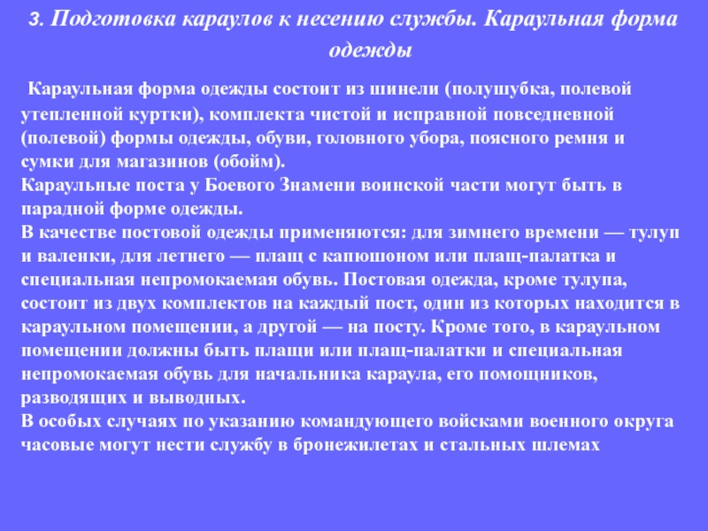 3. Подготовка караулов к несению службы. Караульная форма одежды