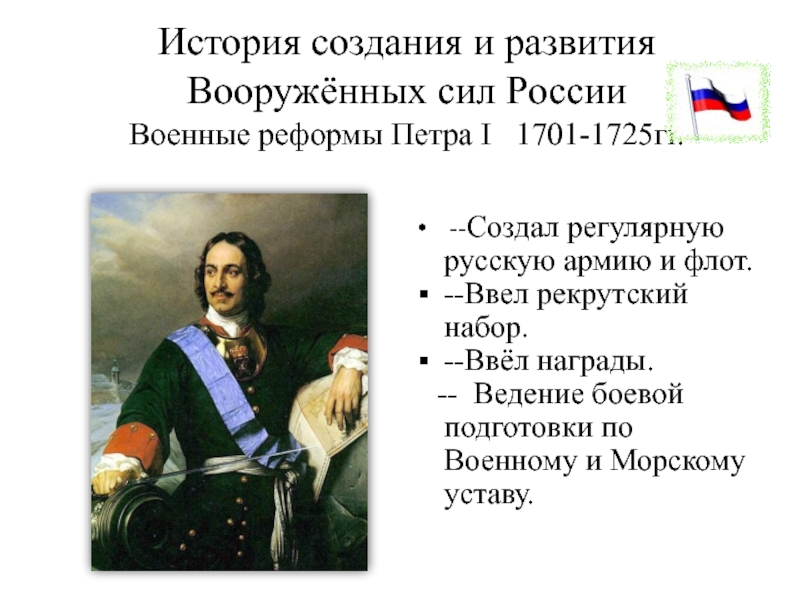 -- Ведение боевой подготовки по Военному и Морскому уставу.