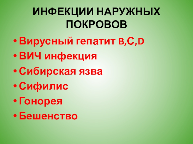 Слайд 23ИНФЕКЦИИ НАРУЖНЫХ ПОКРОВОВ