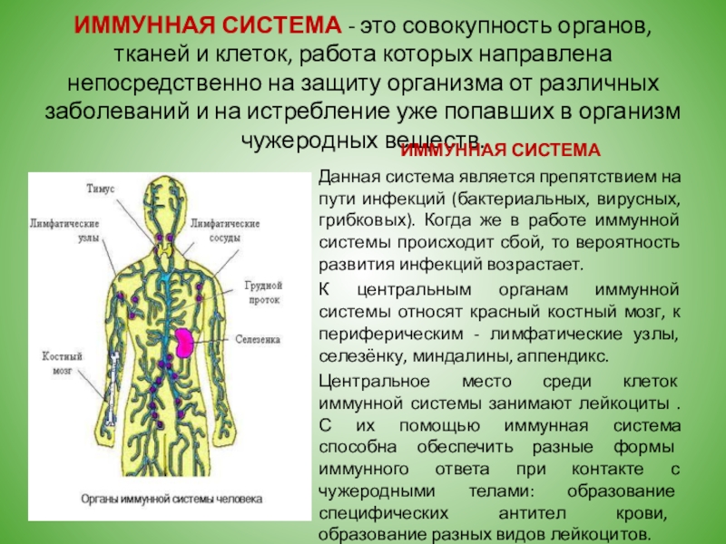 Слайд 36ИММУННАЯ СИСТЕМА - это совокупность органов, тканей и клеток, работа которых
