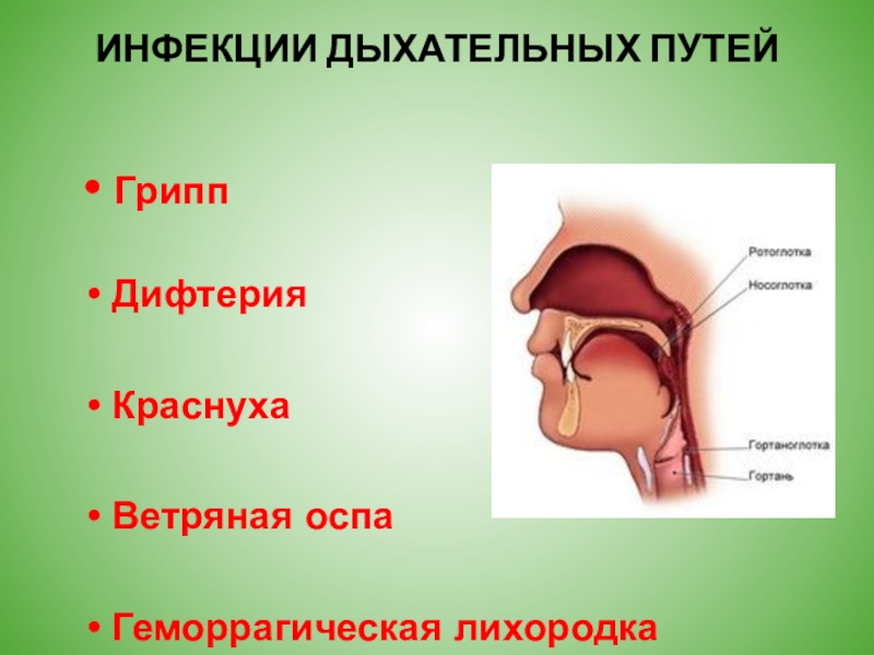 Слайд 12ИНФЕКЦИИ ДЫХАТЕЛЬНЫХ ПУТЕЙ