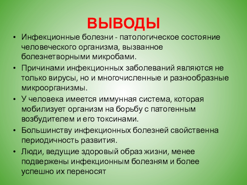 Инфекционные болезни - патологическое состояние человеческого организма, вызванное болезнетворными микробами.