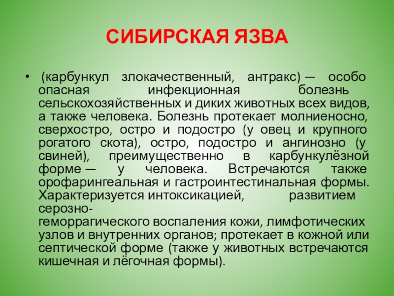 (карбункул злокачественный, антракс) — особо опасная инфекционная болезнь сельскохозяйственных и диких