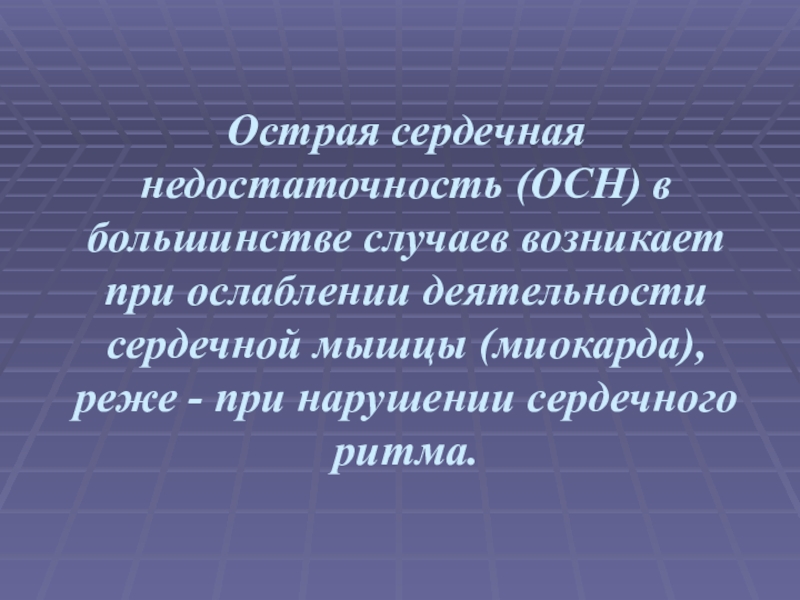 ОСН обычно развивается неожиданно, чаще среди ночи. Больной внезапно просыпается от кошмарного сновидения, чувства удушья и нехватки воздуха. Когда больной садится, ему становится легче дышать. Иногда это не помогает, и тогда нарастает одышка, появляется кашель с выделением вязкой мокроты с примесью крови, дыхание становится клокочущим. Если больному в этот момент не оказать срочную помощь, он может погибнуть.