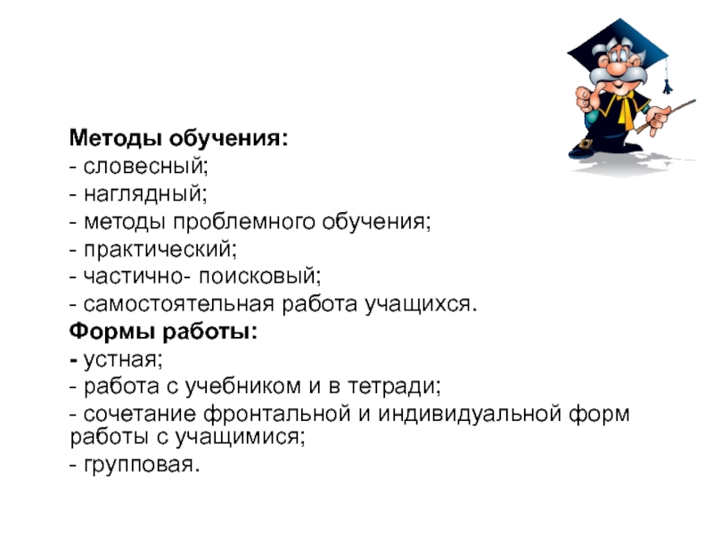 - сочетание фронтальной и индивидуальной форм работы с учащимися;