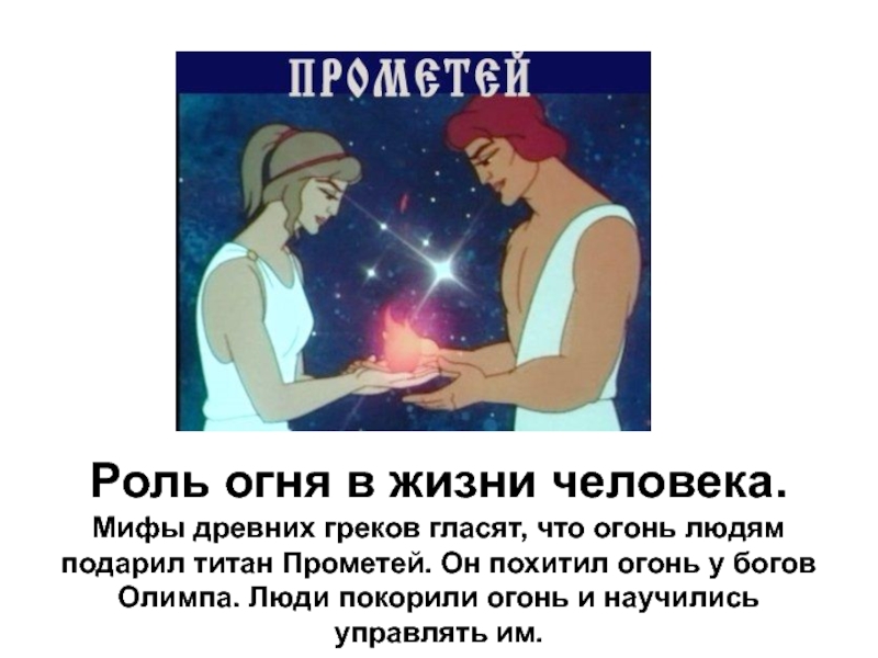 Роль огня в жизни человека. Мифы древних греков гласят, что огонь