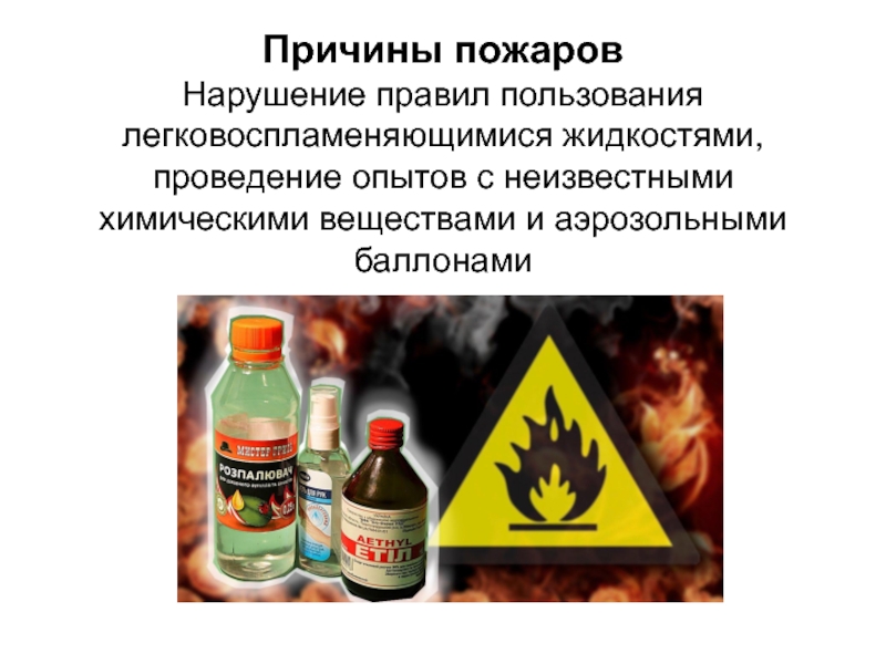 Нарушение правил пользования легковоспламеняющимися жидкостями, проведение опытов с неизвестными