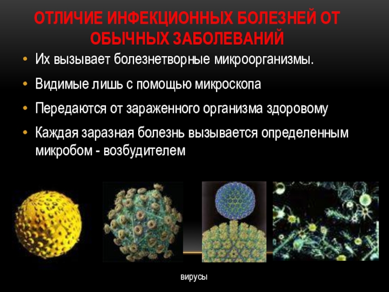 Слайд 11Отличие инфекционных болезней от обычных заболеваний