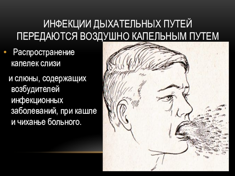 Слайд 14Инфекции дыхательных путей передаются воздушно капельным путем