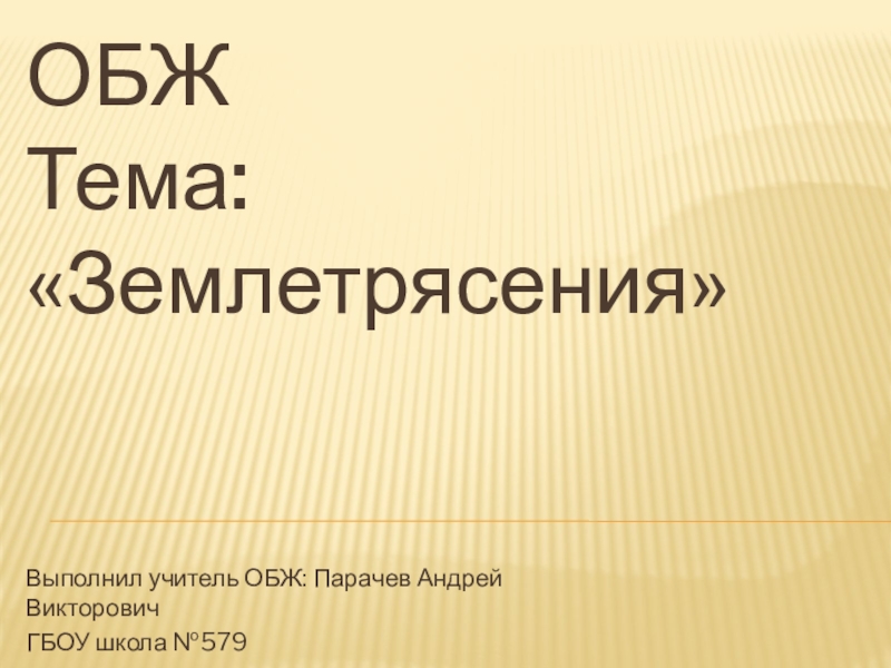ОБЖ Тема: «Землетрясения»Выполнил учитель ОБЖ: Парачев Андрей ВикторовичГБОУ школа №579