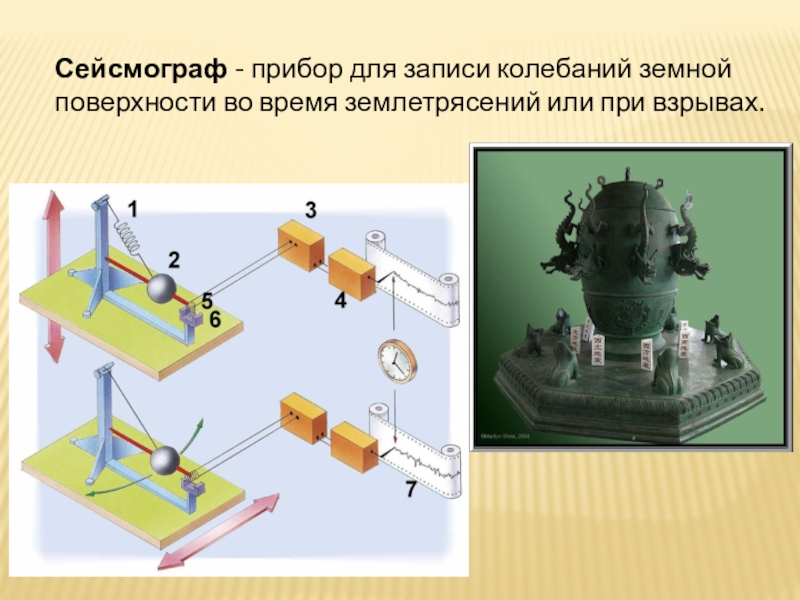 Слайд 16Сейсмограф - прибор для записи колебаний земной поверхности во время землетрясений