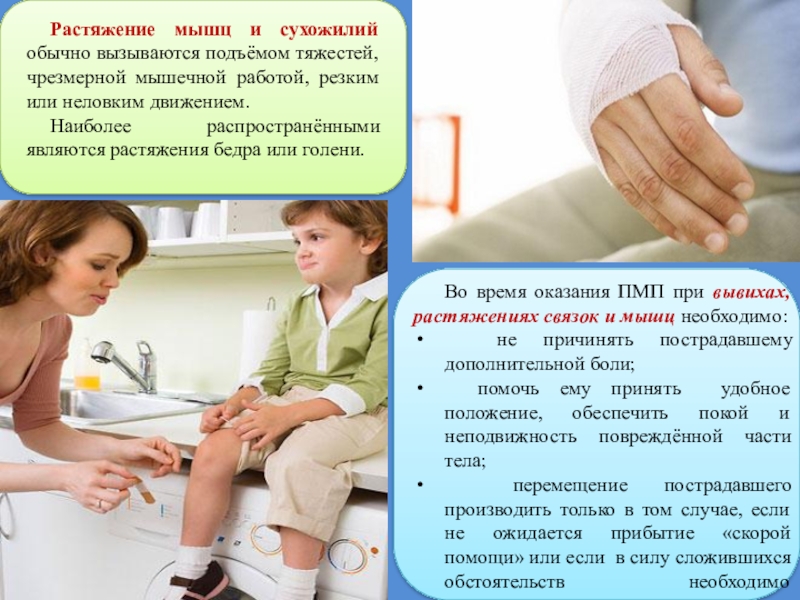 Во время оказания ПМП при вывихах, растяжениях связок и мышц необходимо: