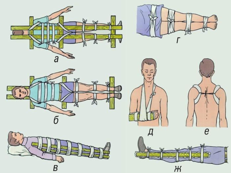 При оказании ПМП при переломах в первую очередь обеспечивается неподвижность кости в месте перелома путём иммобилизации конечности.