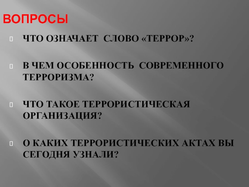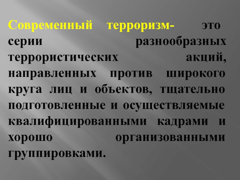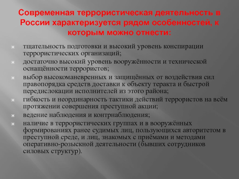 тщательность подготовки и высокий уровень конспирации террористических организаций;