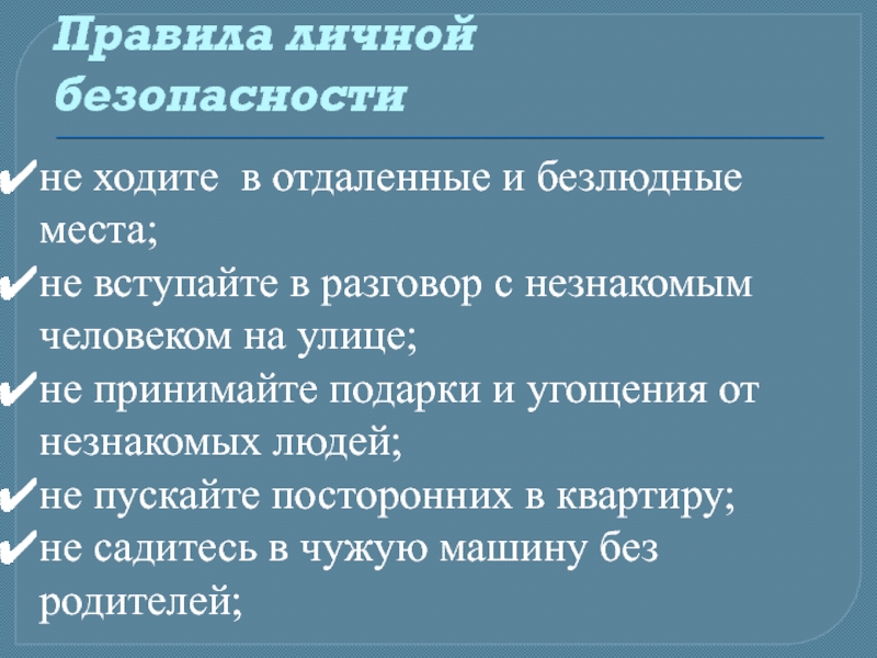 Правила личной безопасности
