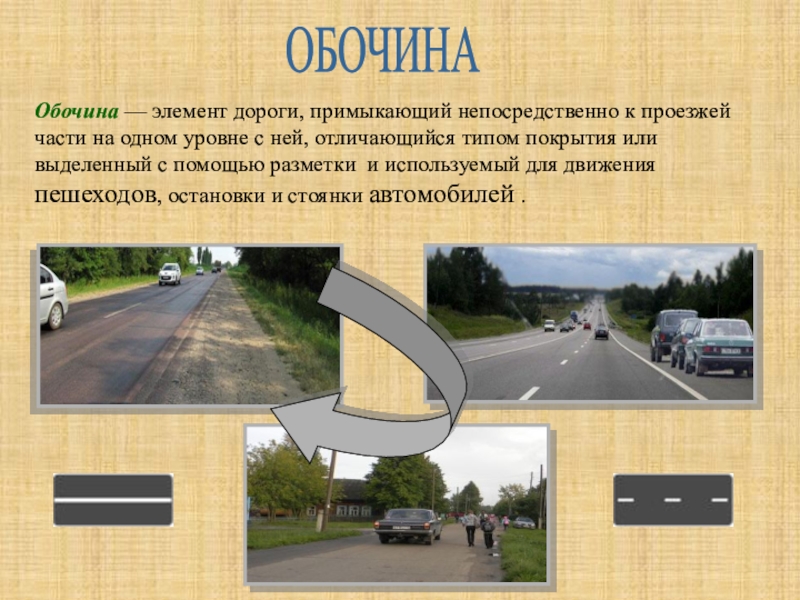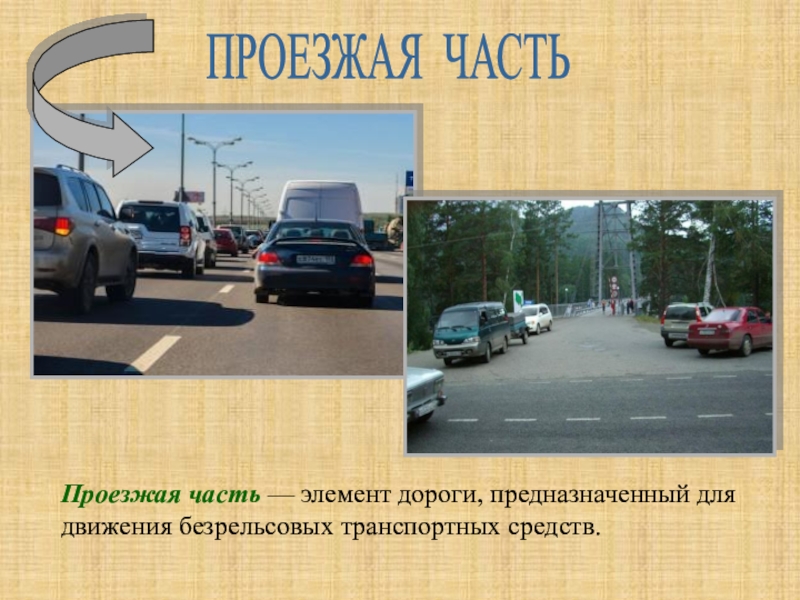 Дорога включает в себя одну и несколько проезжих частей , а также трамвайные пути , тротуары, обочины и разделительные полосы при их наличии
