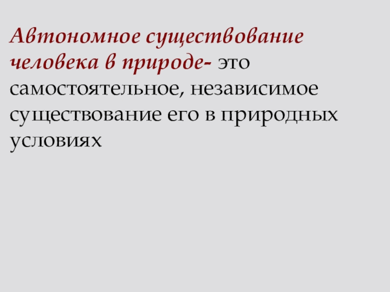 Слайд 5Автономное существование человека в природе- это самостоятельное, независимое существование его в