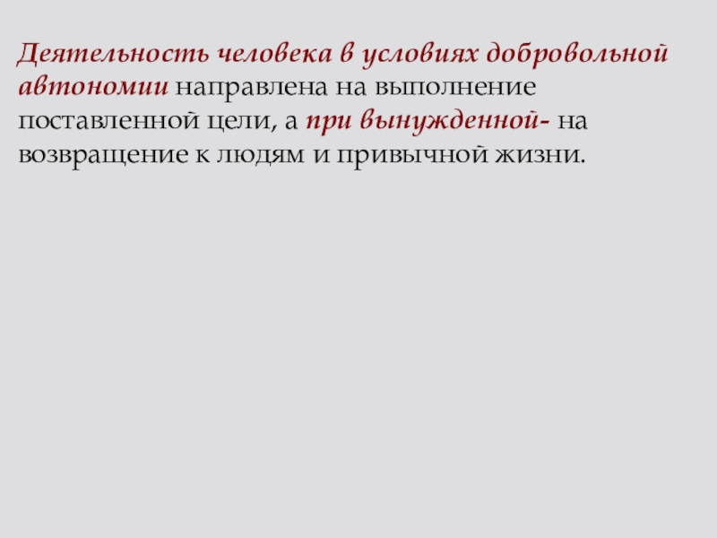 Деятельность человека в условиях добровольной автономии направлена на выполнение поставленной цели, а при вынужденной- на возвращение к