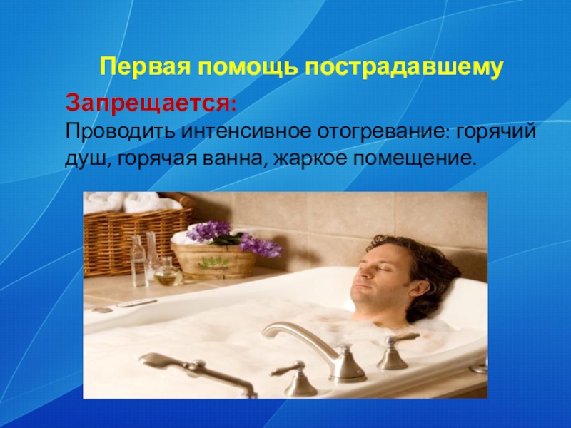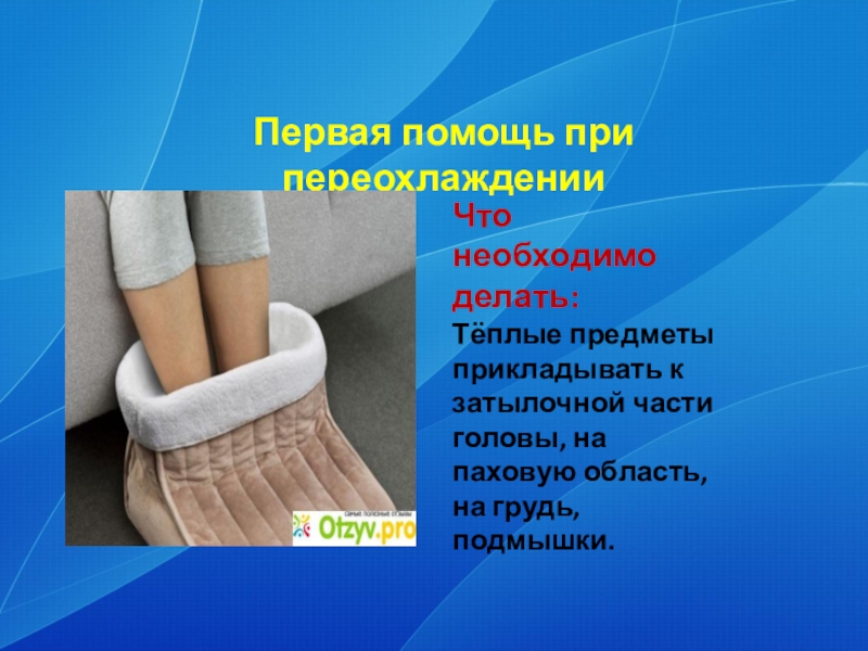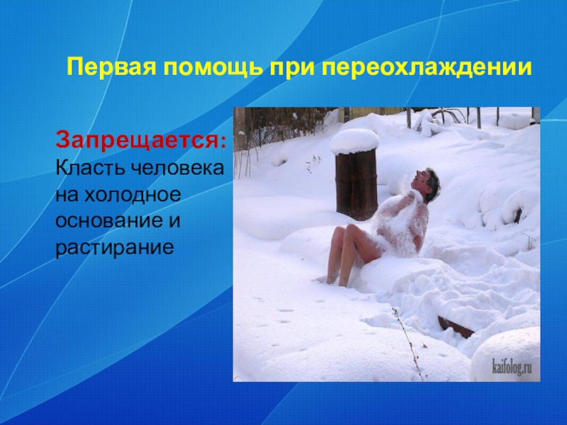Слайд 24Первая помощь при переохлаждении